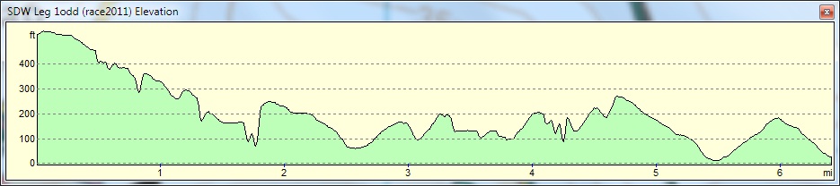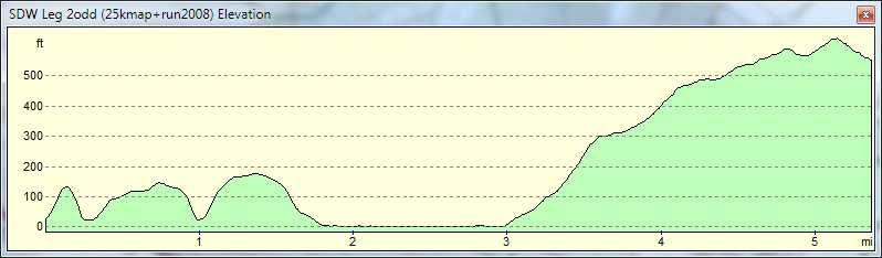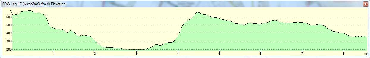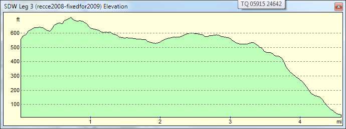 Here are the elevation profiles for the various legs taken from the 1:25000 OS map. The scale for each leg is approximately the same.